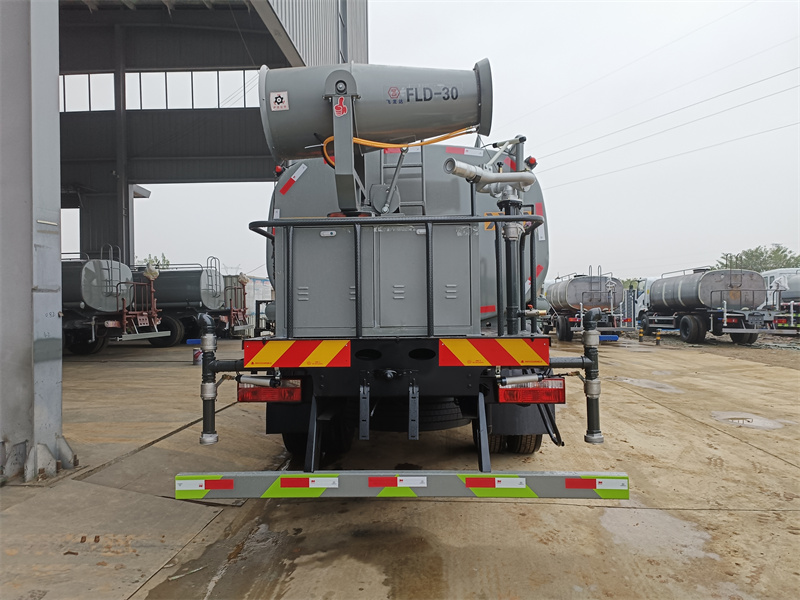 東風(fēng)D9霧炮灑水車罐體約為 12 方,可加裝 30-40 型霧炮 2、邊燈帶電,罐體尾部上方標(biāo)配 2 個(gè)紅色示寬燈, 3、標(biāo)配前噴為鴨嘴直沖,標(biāo)配后沖,用戶可根據(jù)自己的需求,來(lái)調(diào) 整對(duì)沖位置。 4、花紋防滑平臺(tái),炮筒后蓋為定制型螺栓卡扣, 5、前噴、后沖、后灑、側(cè)噴,綠化高炮開(kāi)關(guān)球閥均采用 50 大通經(jīng) 不銹鋼球閥, 6、新式軸承式水炮,更加耐用, 7、60-90 型水泵, 8、防腐法蘭墊片, 9、鋁制后灑,不易炸開(kāi) 10、罐體自動(dòng)焊(美國(guó)林肯焊機(jī)及電源),拼板自動(dòng)焊接,封頭環(huán) 縫焊接,無(wú)氣孔,焊縫美觀。 11、側(cè)護(hù)網(wǎng)、后保險(xiǎn)杠、均為螺栓連接,方便拆卸,維修方便。 12、塑料擋泥板,替代鐵擋泥板,更加輕便,用螺栓連接,方便拆 卸。 13、前部、后部主管連接處為 6 孔圓法蘭,不易沖墊