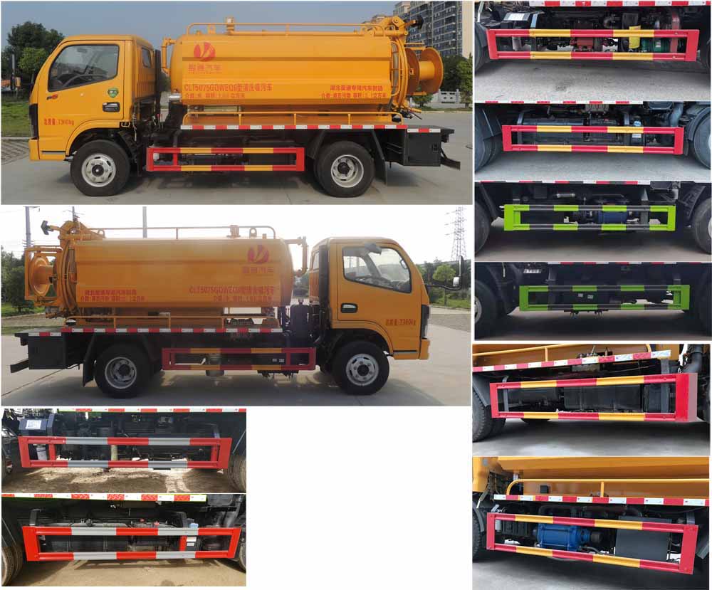 備注 | 5方清洗吸污車-5方管道搜通車該車用于下水道排污及疏通,專用裝置:罐體及清洗吸污裝置;罐體外形尺寸(直段長×直徑)(mm):3100×1300(前部1300mm為清水罐,后部1800mm為污水罐);污水罐總容量:2.1立方米,污水罐有效容積:2.0立方米,介質:液態污物,密度800千克/立方米;清水罐總容量:1.68立方米,清水罐有效容積:1.6立方米,介質:水,密度1000千克/立方米,清水罐和污水罐為獨立罐體,清洗功能時用清水罐,吸污功能時用污水罐,污水罐和清水罐不可同時滿載;ABS型號/廠家:ABS/ASR-12V-4S/4M/襄陽東風隆誠機械有限責任公司;卸料方式為舉升后卸式;側、后防護材料均為:Q235碳鋼,連接方式均為:螺栓連接,后部防護截面尺寸(mm):120×50,后部防護離地高度(mm):370.隨底盤選裝駕駛室,選裝底盤附件安裝位置.選裝燃油箱,電瓶,尿素罐,儲氣筒左右安裝位置 | ||