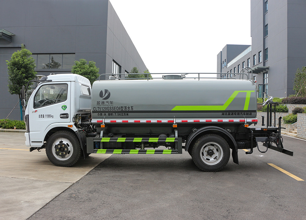 東風灑水車產品主要技術參數 序號 名稱 型號、規格 1 整車型號 CLT5120GSSEQ6 型灑水車 2 發動機型號 D25TCIF1 3 發動機馬力/功率 云內 150 馬力/110KW 4 發動機排量 2499ML 5 變速箱 萬里揚 6 檔 6 輪胎規格 8.25 鋼絲胎 7 軸距 3800 8 總質量 11995KG 9 整備質量 4600KG 10 額定載質量 7200KG 11 整車尺寸(長×寬×高) 7.1*2.25*2.8 12 罐體容積 9.3 方 13 燃料種類 柴油 14 排放標準 國六 15 水泵型號 40/50 16 罐體材質 Q235 碳鋼