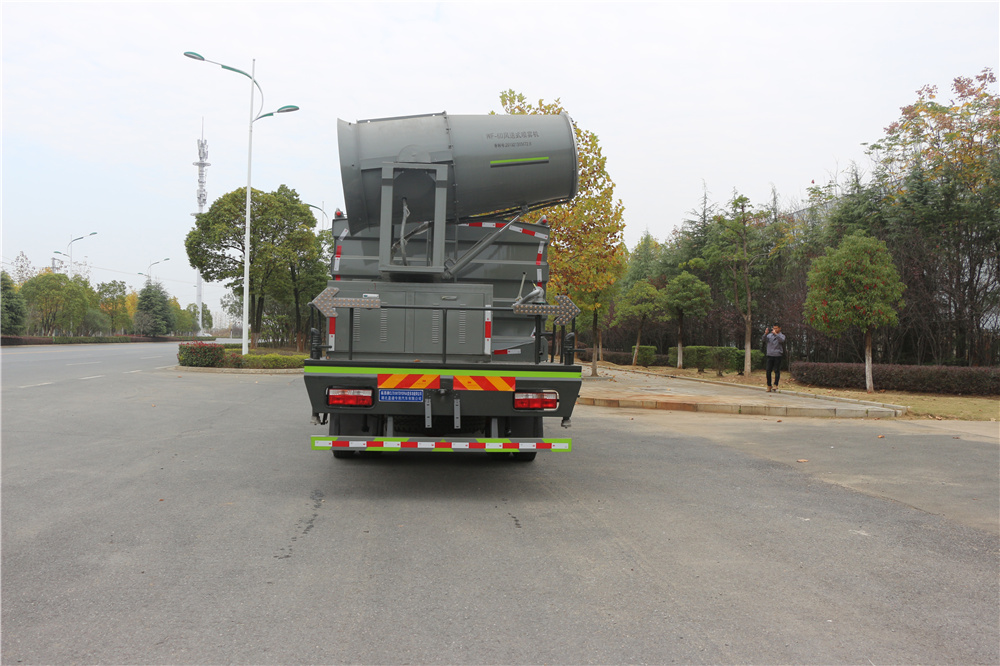 3、后平臺可加裝50米、60米、80米、100米全自動柴油霧炮機組;可噴灑農藥,防役消毒,工地噴霧,拆遷降塵多功能使用。