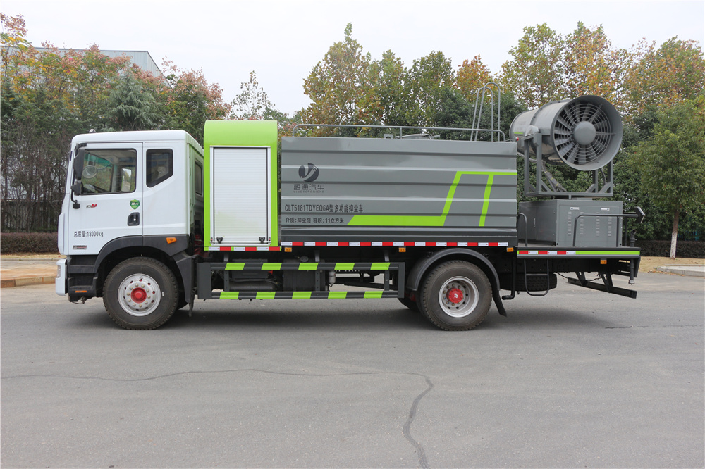 霧炮車專用功能配置:罐體實際容積約為11-12立方米,公告有效參數11立方米、采用武鋼優質碳鋼板卷壓成型。配備專用灑水泵,前噴后灑、左右對沖、側噴、后工作平臺及灑水高壓炮。灑水泵自吸高度為6米左右,整車灑水寬度14米左右,后工作平臺水炮可調成:直沖狀、大雨、中雨、霧狀,有效射程≥28米,后主管道帶一個一寸澆花接口、整車帶接頭、水位計,自流閥及自吸功能。附送2根3米水管,1個爬梯,兩側及后保險杠。