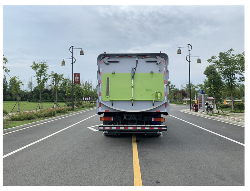 1. 采用吸掃結(jié)合的方式收集垃圾,濕式除塵、電液控制,液壓傾翻卸料的作業(yè)方式對(duì)路面進(jìn)行清掃作業(yè)。