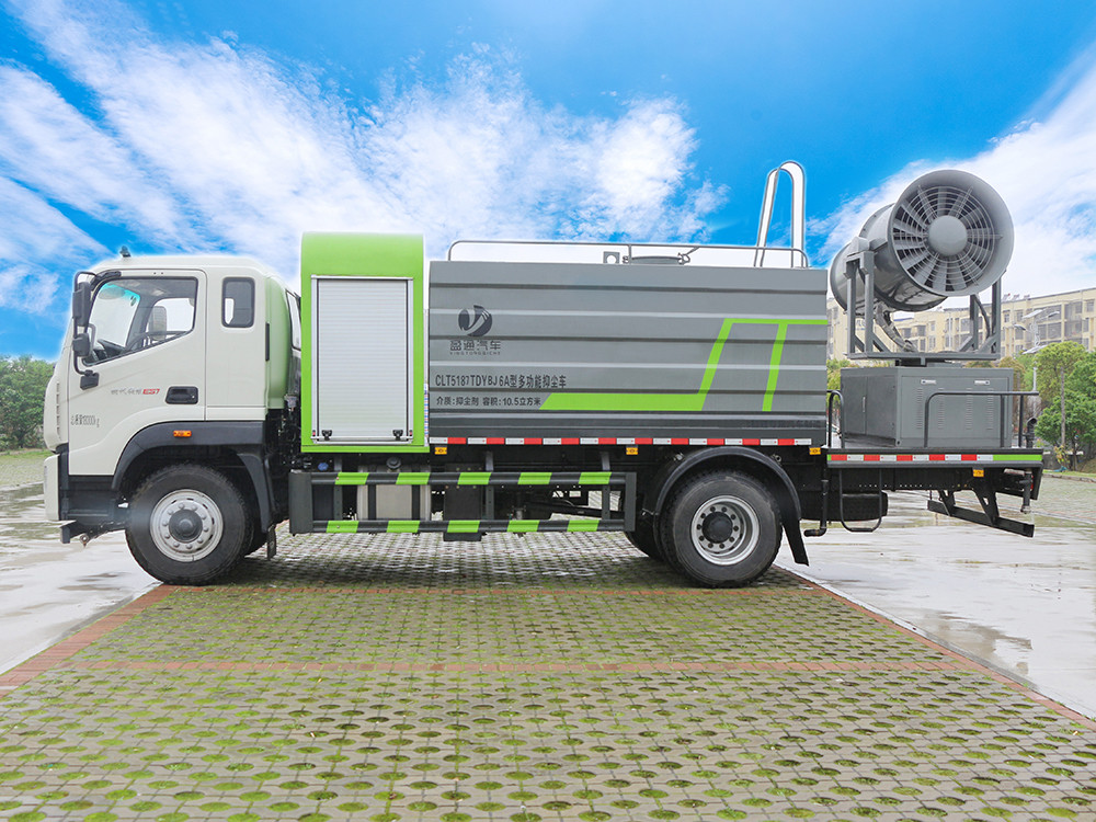 抑塵車又稱為綠化噴灑車、多功能灑水車、園林綠化灑水車。抑 塵車適合于各種路面沖洗,樹木、綠化帶、草坪綠化,道路、廠礦企業(yè) 施工建設(shè),高空建筑沖洗。抑塵也可以作為運(yùn)水車使用,最常見的車 型有綠化噴灑車、多功能灑水車、綠化灑水車幾大類。 我公司產(chǎn)品標(biāo)配前噴(鴨嘴)、后沖、后灑、側(cè)噴、后置式工作 平臺(tái),平臺(tái)上配置綠化水炮(可 360°旋轉(zhuǎn),既可以調(diào)成柱狀,也可 以調(diào)成霧狀,更可以調(diào)成直沖狀、大雨、中雨、小雨、毛毛雨),配 備優(yōu)質(zhì)大功率專用灑水泵(可自吸自排,可從河里或池塘抽水到罐體), 取力器,雜物過濾網(wǎng),消防接口,自流球閥系統(tǒng)、取力器、球閥、濾網(wǎng) 均為國家標(biāo)準(zhǔn)產(chǎn)品,主管道加粗,法蘭墊、法蘭盤加厚,大通徑球閥。 整體具備性能優(yōu)良安全可靠、效率高、流量大、維修方便等特點(diǎn)。