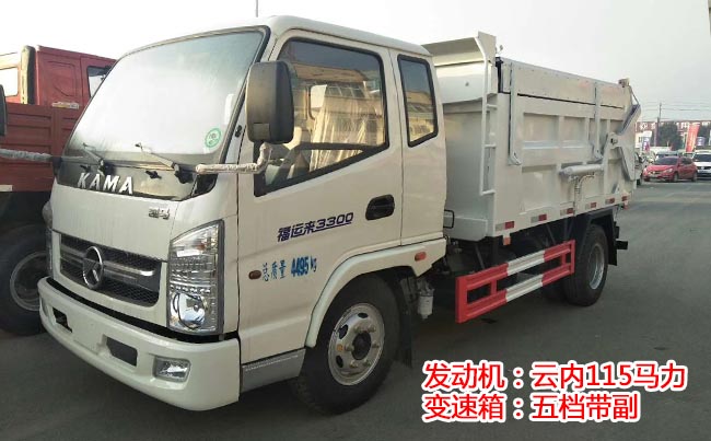 凱馬凱捷側(cè)裝式對接壓縮垃圾車,凱捷1830豪華單排,云內(nèi)95馬力。5檔變速箱,軸距3.3米,4.5噸后橋,7.00-16輪胎,斷氣剎,帶方向助力,ABS,原廠空調(diào)。