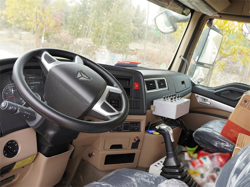 二.產(chǎn)品配置 底盤(pán)采用重汽豪沃TX專(zhuān)用底盤(pán),豪沃TX駕駛室采用德國(guó)曼TGA駕駛室 本體改進(jìn)而成,不僅美觀大方,且舒適實(shí)用;德國(guó)曼350馬力發(fā)動(dòng)機(jī) , 德國(guó)技術(shù)動(dòng)力強(qiáng)勁且油耗低;軸距1850+3800+1350,輪胎11.00R 鋼絲胎,豪沃9檔帶同步器變速箱,掛檔輕便;德國(guó)曼7.5噸雙前橋 和11噸雙后橋, 自重輕,承載強(qiáng)。