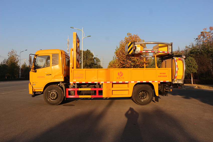 該車專用裝置為:車載式緩撞裝置,主要用于移動施工、臨時性封閉車道或交通事故處理及搶險現場, 降低城市道路施工、高速公路養護等作業中的安全問題;后伸800mm;ABS型號/生產廠家: 3631010-C2000/東科克諾爾商用車制動系統(十堰)有限公司,ABS 8/東科克諾爾商用車制動系統(十堰)有限公司, 4460046450/威伯科汽車控制系統(中國)有限公司;側防護材料為:Q235碳鋼,連接方式為:焊接連接, 后部防護為專用裝置代替,后部防護離地高度(mm):380。隨底盤選裝駕駛室. |