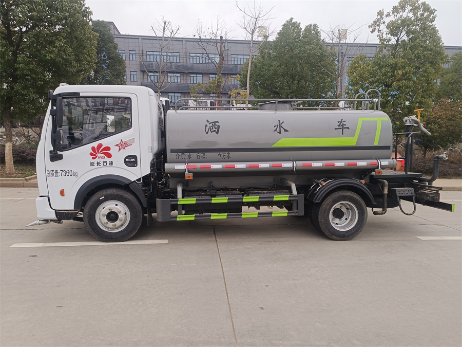 灑水車標配前噴 (鴨嘴) 、后沖、后灑、側噴、后置式工作 平臺,平臺上配置綠化水炮 (可 360°旋轉,既可以調成柱狀,也可 以調成霧狀,更可以調成直沖狀、大雨、中雨、小雨、毛毛雨) ,配 備優質大功率專用灑水泵(可自吸自排,可從河里或池塘抽水到罐體), 取力器,雜物過濾網,消防接口, 自流球閥系統、取力器、球閥、濾網 均為國家標準產品,主管道加粗,法蘭墊、法蘭盤加厚,大通徑球閥。 整體具備性能優良安全可靠、效率高、流量大、維修方便等特點