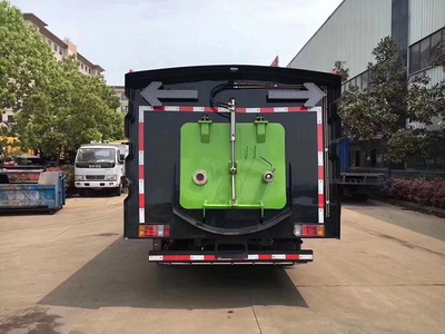 7、垃圾箱采用雙層內(nèi)膽不銹鋼結(jié)構(gòu),內(nèi)部加裝過(guò)濾網(wǎng)板,能有效地防止樹(shù)葉、塑料袋之類的輕飄物堵塞風(fēng)口及灰塵的排出。內(nèi)置污水報(bào)警系統(tǒng),通過(guò)后門處污水閥方便的將污水排至下水道,最大限度的利用了垃圾箱裝載垃圾的空間。廂體采用傾翻卸料,帶高壓沖洗自潔裝置。