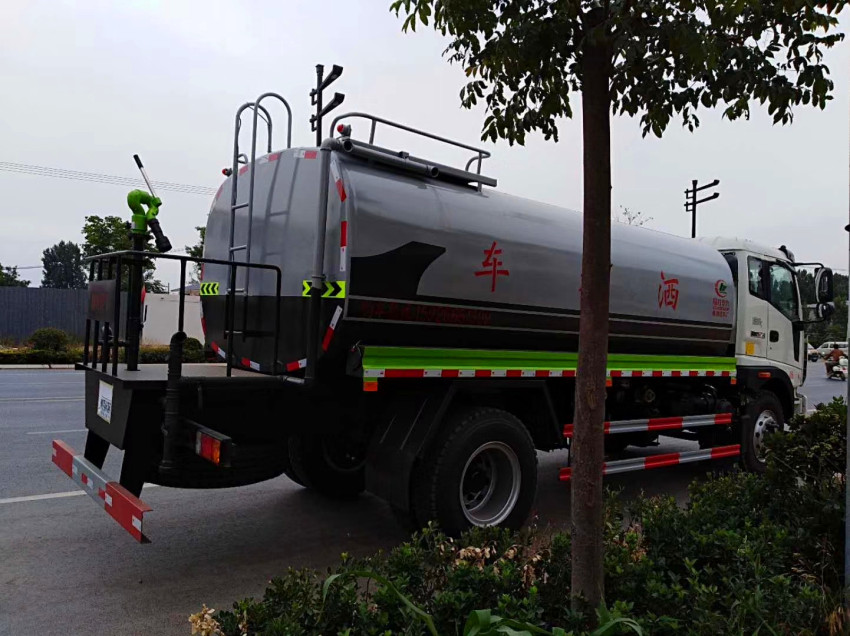 配備大功率專用灑水泵,泵可自吸自排,安裝過濾網,帶消防接口,可通過消防栓進水,帶自流閥,隨車選裝20米綠化卷盤,可噴灑農藥,罐體金屬漆。罐體有橢圓和方圓罐兩種,可根據用戶的要求定做