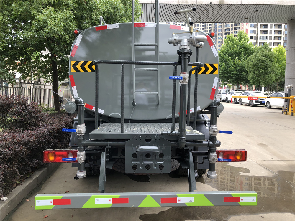 東風華神T1灑水車專用功能配置:罐體實際容積約為9.35立方米,采用武鋼優(yōu)質(zhì)碳鋼板卷壓成型。配備專用灑水泵,自吸自排,前噴后灑、側(cè)噴、后工作平臺及灑水高壓炮。灑水泵自吸高度為6米左右,整車灑水寬度14米左右,后工作平臺水炮可調(diào)成:直沖狀、大雨、中雨、小雨、毛毛雨,有效射程≥28米,整車帶接頭、水位計,自流閥。后工作平臺主管道有一個一寸的澆花接口,附送2根3米水管,1個爬梯,兩側(cè)及后保險杠。