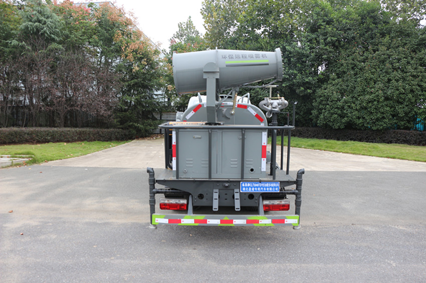 灑水車前有鴨嘴形噴嘴或圓頭沖嘴,后面裝有圓柱形灑水砣,側噴花灑蓮花頭。車后部裝有高射噴槍。