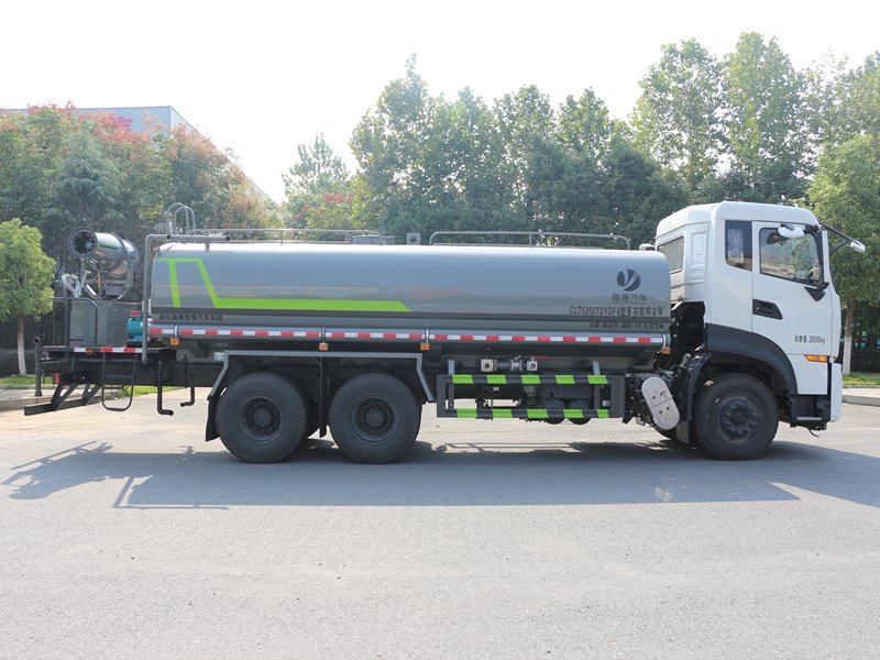 專用功能配置:罐體容積約為23立方米,公告有效參數(shù)18.6立方米、采用武鋼優(yōu)質(zhì)碳鋼板卷壓成型。配備專用灑水泵,自吸自排,前噴后灑、側(cè)噴、后工作平臺(tái)及灑水高壓炮。灑水泵自吸高度為6米左右,整車灑水寬度14米左右,后工作平臺(tái)水炮上下左右360度旋轉(zhuǎn)可調(diào)成:直沖狀、大雨、中雨、小雨、霧狀,有效射程≥28米,整車帶接頭、水位計(jì),自流閥。后工作平臺(tái)主管路帶1寸澆花接口,附送2根3米水管,1個(gè)爬梯,兩側(cè)及后保險(xiǎn)杠。