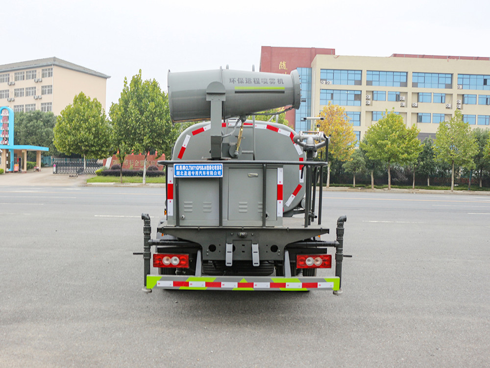 福田 H2 藍牌 5 方抑塵車-灑水車產品產品配置 1.底盤配置: 福田 H2 駕駛室,發動機全柴 115 馬力,萬里揚 5 檔變速箱, 7.00R16 鋼絲胎,3360 軸距,中控鎖,電動玻璃,T-BOX(全國通用), 5T 后橋,斷氣剎,ABS2.上裝配置: 1、罐體約為 5 方,可加裝 30 型霧炮 2、邊燈帶電,罐體尾部上方標配 2 個紅色示寬燈, 3、標配前噴為鴨嘴直沖,標配后沖,用戶可根據自己的需求,來調 整對沖位置。 4、花紋防滑平臺,炮筒后蓋為定制型螺栓卡扣, 5、前噴、后沖、后灑、側噴,綠化高炮開關球閥均采用 50 大通經 不銹鋼球閥, 6、新式軸承式水炮,更加耐用, 7、40-50 型水泵, 8、防腐法蘭墊片, 9、鋁制后灑,不易炸開 10、罐體自動焊(美國林肯焊機及電源),拼板自動焊接,封頭環 縫焊接,無氣孔,焊縫美觀。 11、側護網、后保險杠、均為螺栓連接,方便拆卸,維修方便。 12、塑料擋泥板,替代鐵擋泥板,更加輕便,用螺栓連接,方便拆 卸。 13、前部、后部主管連接處為 6 孔圓法蘭,不易沖墊
