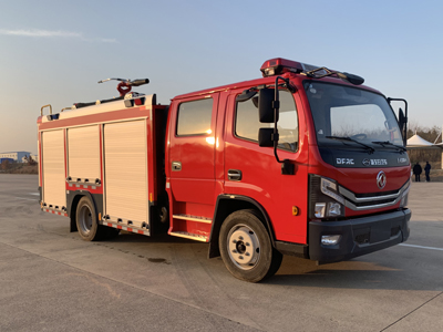 罐體總容積為4.127立方米,水罐容積:3.000立方米,水罐尺寸:1890×1300×1280mm,泡沫液罐容積:1.127立方米,泡沫液罐尺寸:710×1300×1280mm。整體式側防護結構,后防護裝置材料:Q235A,截面尺寸(寬×高):60×120mm,與車輛連接方式:螺栓連接,后防護離地高度:455mm,ABS生產企業為襄陽東風隆誠機械有限責任公司,型號為ABS/ASR-24V-4S/4M。主要專用裝置有消防泵、消防炮。