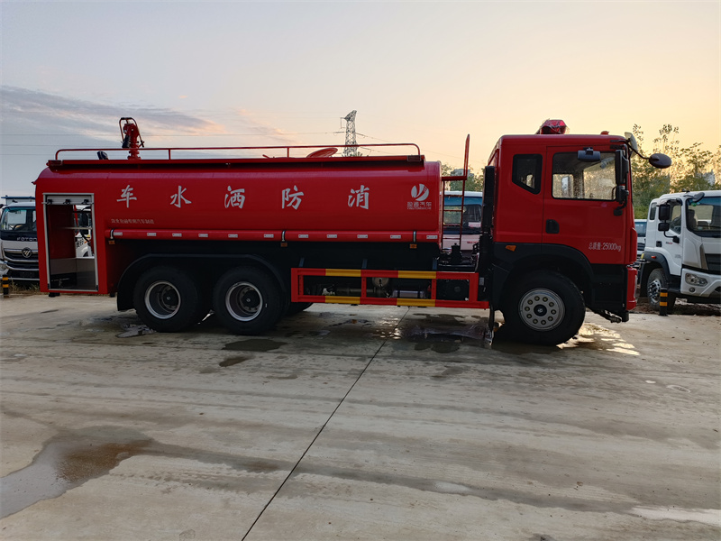 注:車輛顏色可根據(jù)需求定 一. 產(chǎn)品簡述 消防灑水車參數(shù) 消防灑水車,又稱消防灑水兩用車、灑水消防兩用車、森林消防灑水車、學(xué)校消防灑水車、機(jī) 場消防灑水車、社區(qū)消防灑水、街道及鄉(xiāng)鎮(zhèn)和鄉(xiāng)村消防灑水功能。是一款集消防車和灑水車于一體的 兩用車,是介于消防車與灑水車之間,具有消防灑水一體化用途,與消防車相比雖缺少器材箱,但與 消防車的射程相同,具有同樣的消防功能。 功能介紹:與灑水車相比,繼承了灑水車的全部功能,同時也彌補(bǔ)了灑水車射程小,壓力小等 問題。消防灑水車除了裝備消防水泵及器材以外,還設(shè)有較大容量的貯水罐及水槍、水炮等。可將水 和消防人員輸送至火場獨立進(jìn)行撲救火災(zāi)。它也可以從水源吸水直接進(jìn)行撲救,或向其他消防車和滅 火噴射裝置供水。優(yōu)于消防車的功能:因為沒有消防車器材箱,底盤高度及車輛寬度更適應(yīng)山間、鄉(xiāng) 鎮(zhèn)、鄉(xiāng)村的路況,是森林消防、鄉(xiāng)鎮(zhèn)和鄉(xiāng)村消防的有利消防工具。