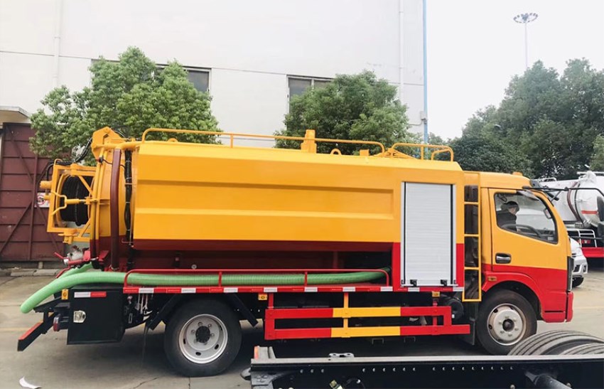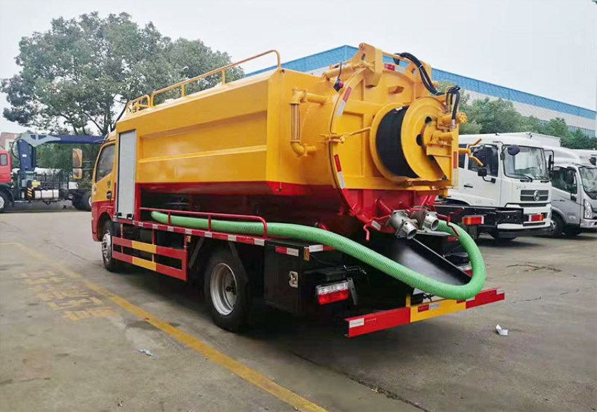 東風大多利卡D7新款駕駛室,底盤型號:EQ1110SJ8BDC 廣西玉柴150馬力渦輪增壓,5.5噸后橋,8.25R16鋼絲胎,雙層大梁,斷氣剎,帶空調(diào) ,ABS,6檔變速箱。吸污罐:7立方,罐體6毫米碳鋼,吸污部分:配SK-9水循環(huán)泵,(選裝SK-12水循環(huán)泵)進氣管加過濾網(wǎng),防溢閥加高,兩根8米吸污管,后蓋4個卡扣鎖緊,后視糞窗,后部150mm的球閥和100mm的球閥均帶出口,吸污罐體和清洗罐體外互通。右后邊150mm排污口帶球閥。清洗水罐3立方,4毫米碳鋼,右側(cè)消防進水,氣控推水,帶過濾網(wǎng),采用天津通潔高壓清洗泵,24兆帕,170升流量,選裝215L流量,22兆帕高壓泵,標配60米內(nèi)徑19#高壓管,組合噴頭一套,罐體兩邊為平臺,后背700mm高壓清洗卷盤,后部左右后一個示寬燈,整車工程黃, 其它標準配置。