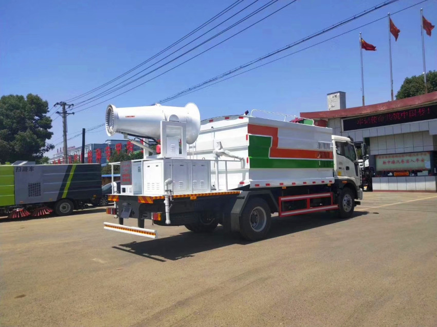 抑塵車吸程≧7米,灑水寬度≧14-16米,射程≧25-40米,引水時間<5min,流量60m3/h。前沖(噴)、后灑、帶側噴(花灑)、帶后工作平臺、平臺上安裝綠化灑水高炮(炮噴射形狀可調節:直沖、大雨、中雨、毛毛雨、霧狀、可連續調節,360°旋轉),配消防接口,自流閥,濾網,帶自吸自排功能。配備大功率專用灑水泵,泵可自吸自排,安裝過濾網,帶消防接口,可通過消防栓進水,帶自流閥,此車尾部加裝大功率農藥噴灑炮,噴灑狀態霧狀,有效射程15-45米,外部平臺帶獨立的機組。