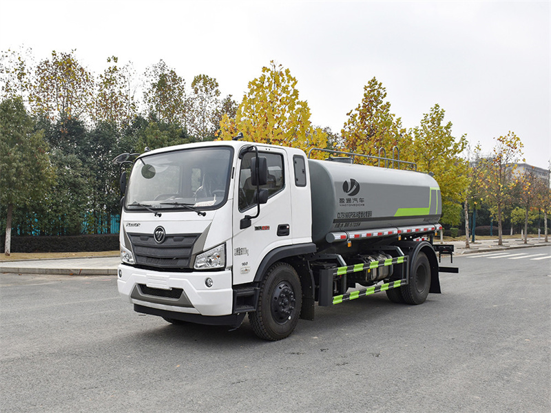 福田新款12-15噸灑水車產(chǎn)品標(biāo)配前噴(鴨嘴)、后沖、后灑、側(cè)噴、后置式工作 平臺(tái),平臺(tái)上配置綠化水炮(可 360°旋轉(zhuǎn),既可以調(diào)成柱狀,也可 以調(diào)成霧狀,更可以調(diào)成直沖狀、大雨、中雨、小雨、毛毛雨),配 備優(yōu)質(zhì)大功率專用灑水泵(可自吸自排,可從河里或池塘抽水到罐體), 取力器,雜物過濾網(wǎng),消防接口,自流球閥系統(tǒng)、取力器、球閥、濾網(wǎng) 均為國(guó)家標(biāo)準(zhǔn)產(chǎn)品,主管道加粗,法蘭墊、法蘭盤加厚,大通徑球閥。 整體具備性能優(yōu)良安全可靠、效率高、流量大、維修方便等特點(diǎn)