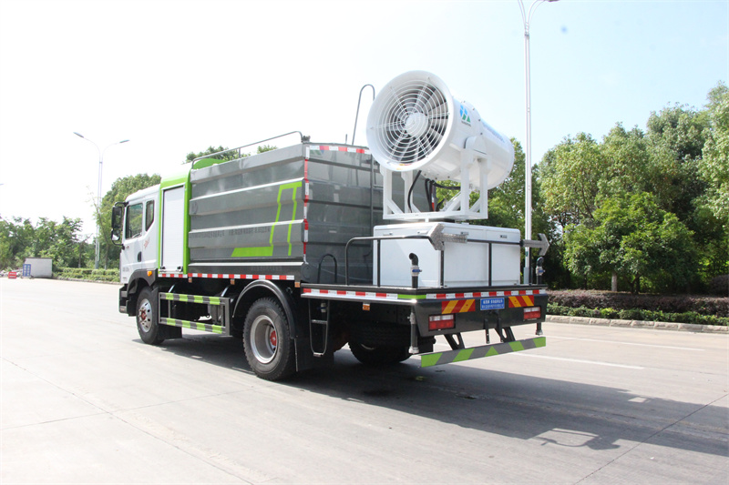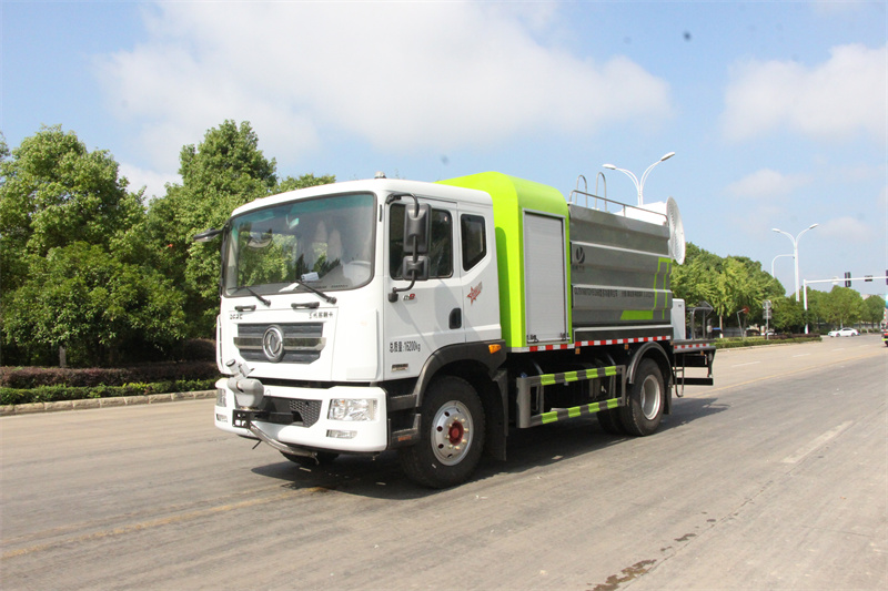 東風(fēng)12方大型霧炮灑水車產(chǎn)品簡述:縱昂牌 CLT5181TDYEQ6A 型多功能抑塵車標(biāo)配前噴(鴨嘴)、后 對沖、后灑、側(cè)噴、后置式工作平臺,平臺上配置綠化水炮(可 360°旋轉(zhuǎn),既 可以調(diào)成柱狀,也可以調(diào)成霧狀),配備優(yōu)質(zhì)大功率專用灑水泵(可自吸自排, 可從河里或池塘抽水到罐體),取力器,雜物過濾網(wǎng),消防接口,自流球閥系統(tǒng)、 取力器、球閥、濾網(wǎng)均為國家標(biāo)準(zhǔn)產(chǎn)品,主管道加粗,法蘭墊、法蘭盤加厚, 大通徑球閥。整體具備性能優(yōu)良安全可靠、效率高、流量大、維修方便等特點